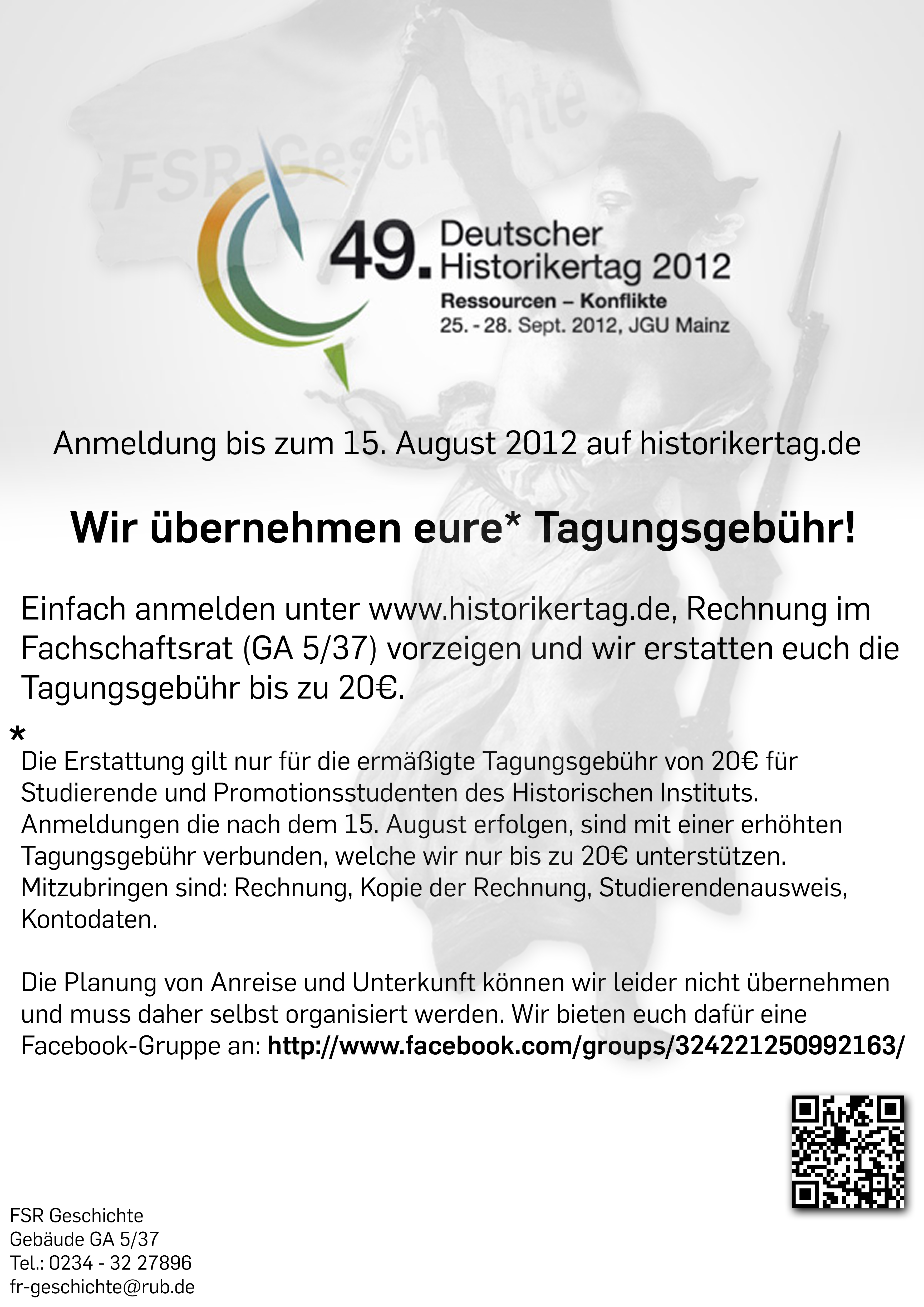 49. Deutscher Historikertag - der FSR Geschichte übernimmt die Tagungsgebühr!
