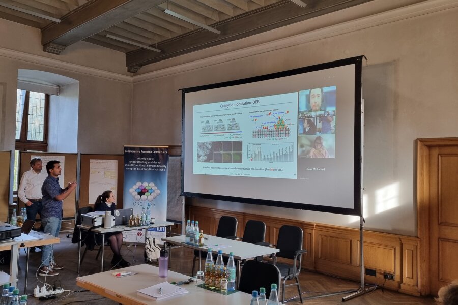 The CRC aims to leverage the possibilities of CCSS as material design platforms by establishing a combined theoretical and experimental understanding of their atomic-scale surface features, as the unique properties of CCSS are caused by the large number of diverse poly-elemental active sites across their surface. Gaining control of and the ability to design these surface atom arrangements (SAA) has the potential to overcome limitations of conventional electrocatalysts and will pave the way to multifunctional materials, with unprecedented combinations of activity and stability as well as possibilities for cascade reactions. SAA are specific arrangements of (sub)surface atoms and their chemical identities. They form in statistical abundance the surface composition of CCSS. Knowledge of SAA is essential for designing composition-structure‑activity relations for CCSS surfaces.