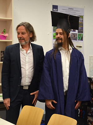 Der Lehrstuhl gratuliert Herrn Dr. Jonas Henske zur, mit Auszeichnung bestandenen Disputation. Der Titel seiner Arbeit lautet: "Origin, accumulation and function of male perfumes in orchid bees".