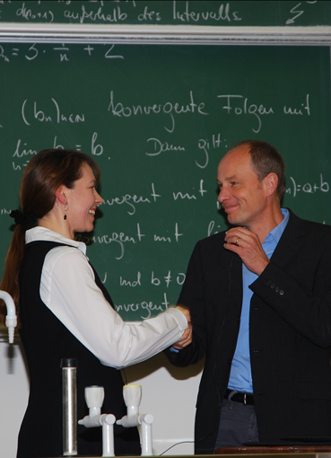 Im Rahmen des Semesterkonzertes 2009 gab es den feierlichen Anlass, neben zwei weiteren herausragendende Absolventinnen Herrn Dr. Florian Leese vom Lehrstuhl für Evolutionsökologie und Biodiversität der Tiere für seine hervorragende Dissertation: ?The recent evolutionary history of Antartic and Subantarctic benthic isopods: Development and analysis of evolving molecular markers? zu ehren. Birgit Fischer und Prorektor Prof. Dr. Ulf Eysel überreichten die Preise der Gesellschaft der Freunde der RUB (GDF) - den Wilhelm-Hollenberg-Preis, den Dr.-Klaus-Marquardt-Preis und den Dr.-Heinrich-Kost-Preis.