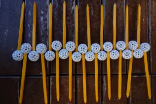 Build 30 red bridges using 30 balls and 60 r2 struts. Use them to connect the yellow lollipops constructed in step 2.