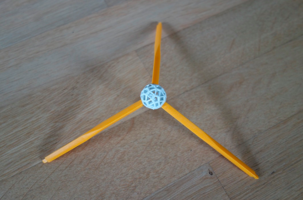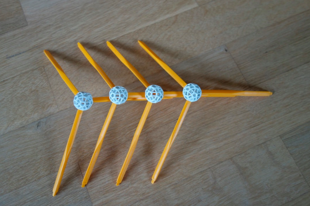 Build another 4 yellow stars and use them to connect the balls constructed in step 3. Four yellow parallelotopes must arise and the model is complete.