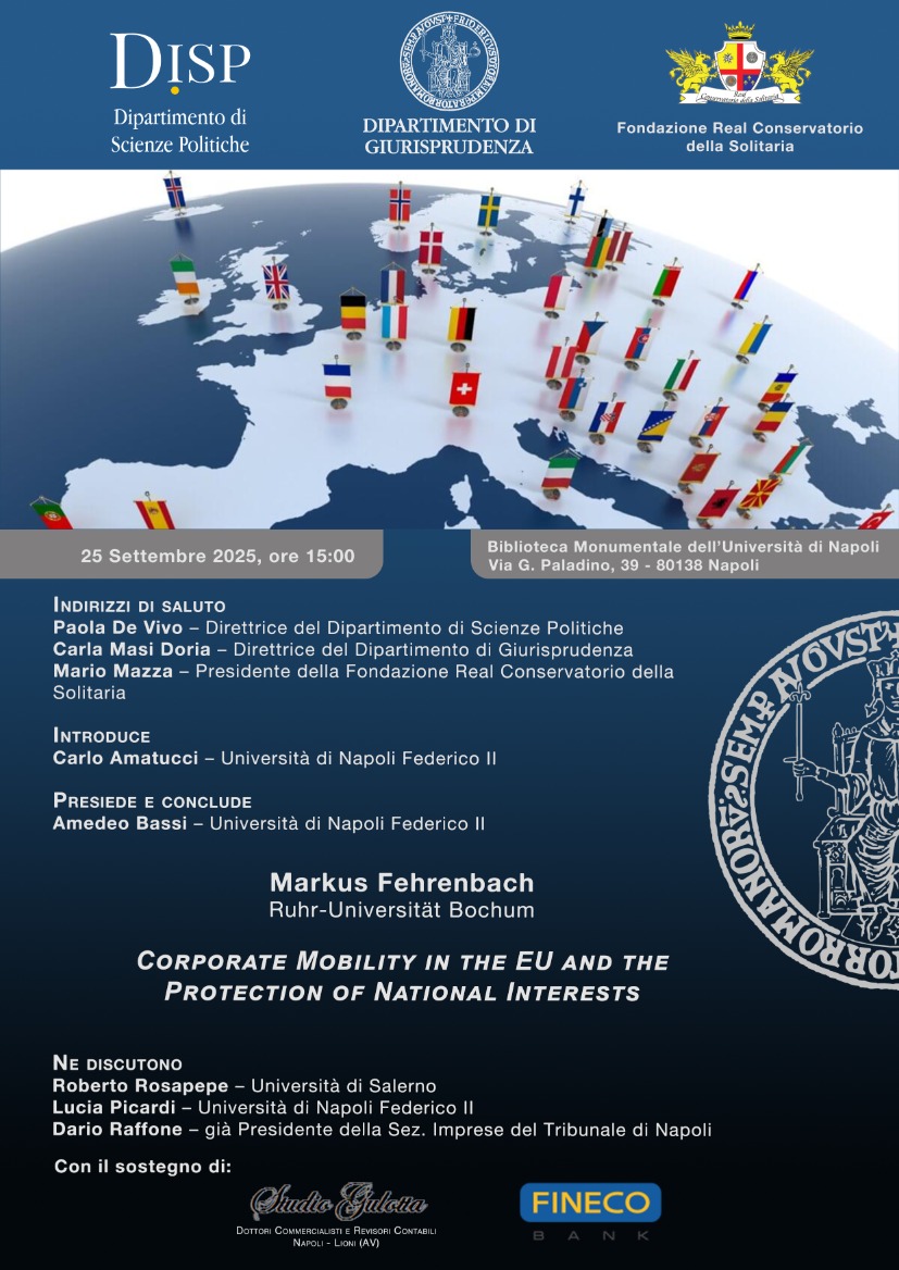 Am 25.09.2025 spricht Herr Professor Fehrenbach am Dipartimento de Giurisprudenza, Università di Napoli Federico II über "Corporate Mobility in the EU and the protection of national interests"