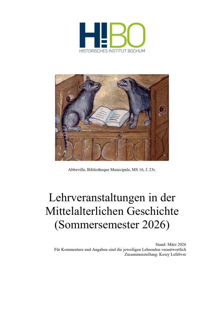 Für den besseren Überblick zum Sommersemester 2026 haben wir hier das Veranstaltungsprogramm zur Mittelalterlichen Geschichte für Sie zusammengestellt: Lehrveranstaltungen der Mittelalterlichen Geschichte im Sommersemester 2026
