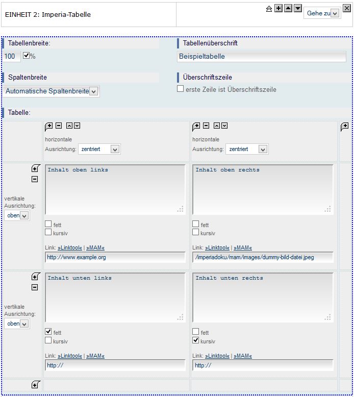 Mit dem Modul "Imperia-Tabelle" können Sie eine Tabelle erstellen.