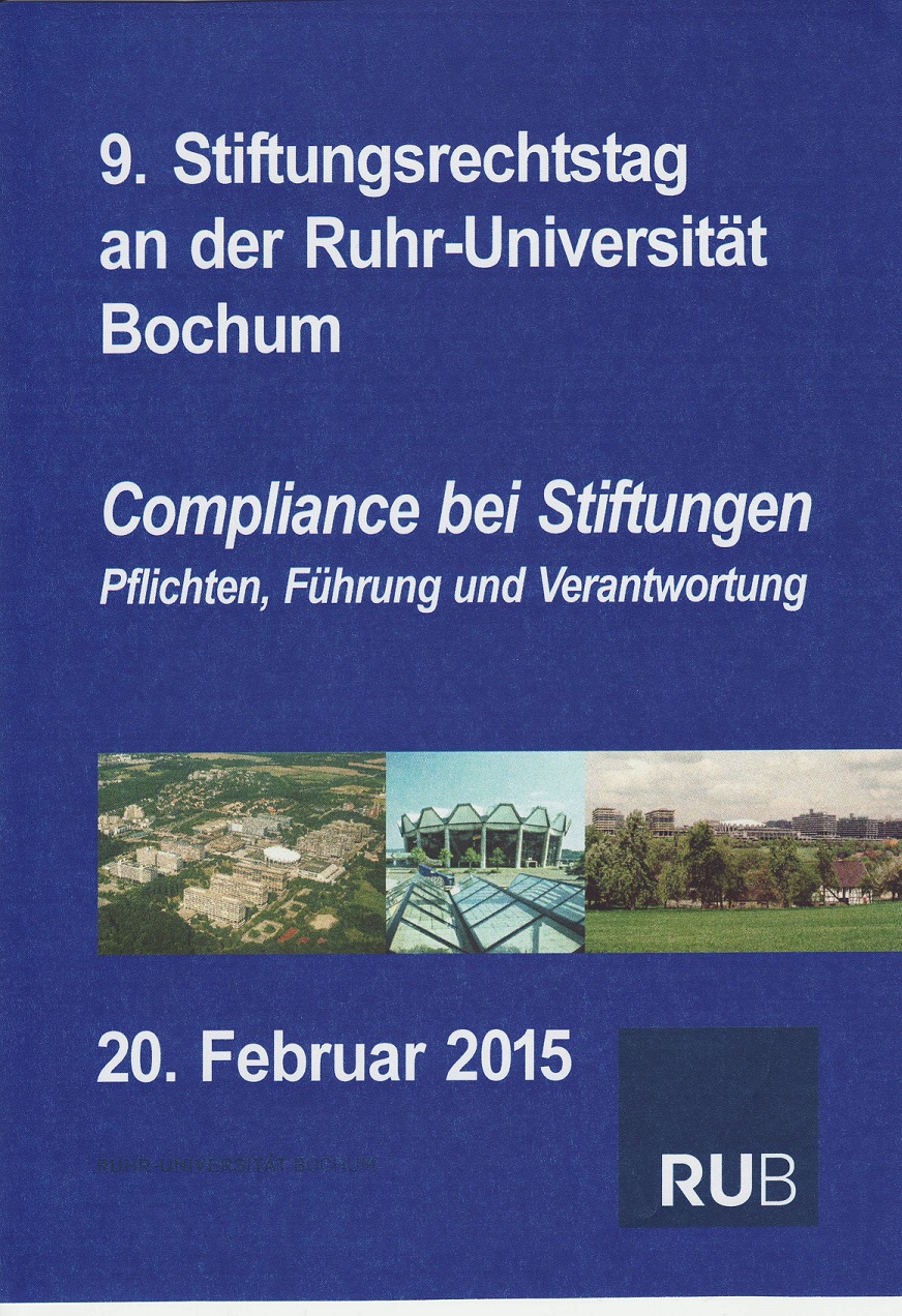Die grundsätzlich für die Ewigkeit errichtete Stiftung erfüllt ihren Stiftungszweck aus den Erträgen ihres Vermögens. Virulent wird dann eine Haftung mit ihrem Grundstockvermögen infolge von Regelverstößen. Sie kann sich existenzgefährdend auswirken. Vor diesem Hintergrund erlangt das Thema "Compliance" - die Beibehaltung und Sicherstellung rechtskonformen Verhaltens -, das bereits eine nicht hinwegzudenkende Komponente des Risikomanagements bei der Unternehmensführung darstellt, auch in der Stiftungsszene nach und nach immer mehr Relevanz. Aus diesem Grund stand der 9. Stiftungsrechtstag an der Ruhr-Universität Bochum unter dem Generalthema "Compliance bei Stiftungen - Pflichten, Führung und Verantwortung". Ausgewiesene Experten aus Wissenschaft und Praxis informierten die mehr als 200 Teilnehmer über diese in der Stiftungsszene viel diskutierte Thematik. Nicht außer Acht blieben dabei - wie gewohnt - praxisrelevante Themen, wie die aktuellen Rechtsprobleme im Stiftungsaufsichts- und Stiftungssteuerrecht.