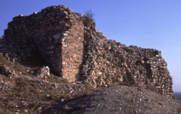 die weitgehend verfallene Ostfront des Kastells, hier