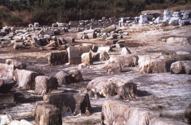 situ erhaltenen Fundamenten der Nordhalle des