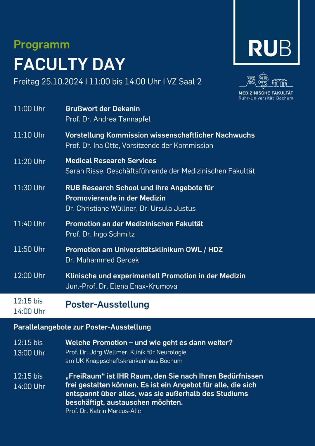 Each clinic, department or institute of the RUB or the UK RUB is given the opportunity to present itself and its research focus to the students with a poster.