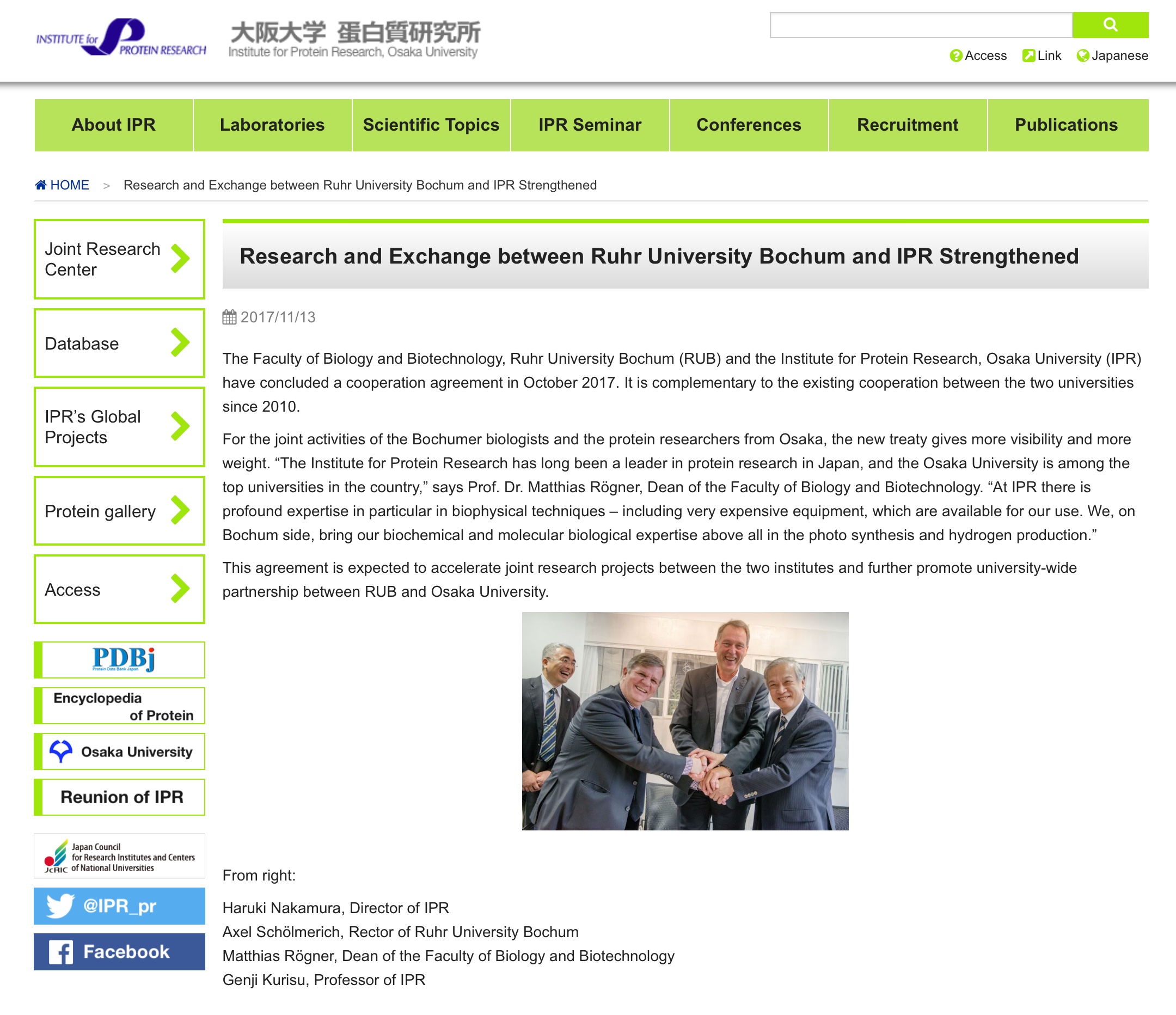 | Nikkei-article 08' 2017 | IPR Osaka University 11' 2017 | RUB-Osaka contract 11' 2017 |