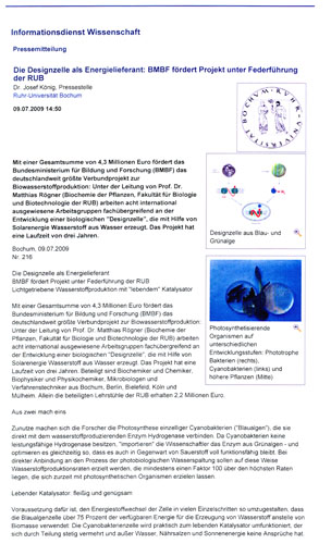 Pressemitteilung der RUB Aug. 2013 (Link to the press release in english) |
